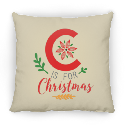 Double Sided Design C is for Christmas Holiday Decoration Pillow, Festive Holiday Decoration, Square Pillow