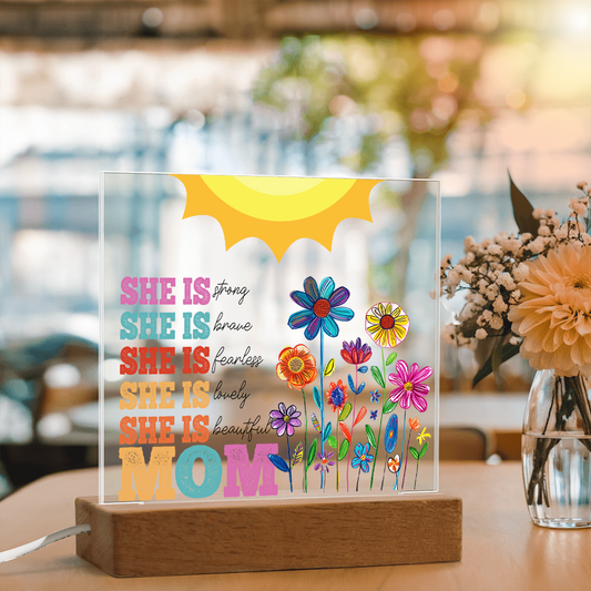 Empowered by Love: She is Strong, Brave, Fearless, Lovely, Beautiful, Mom Square Acrylic Plaque