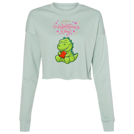 Happy Valentines Day Dino - Ladies' Cropped Fleece Crew