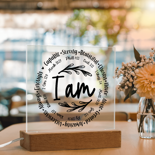 I Am: Affirmed by His Word Square Acrylic Plaque