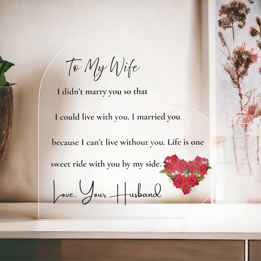 I Can't Live Without You Heart Shaped Acrylic To Wife