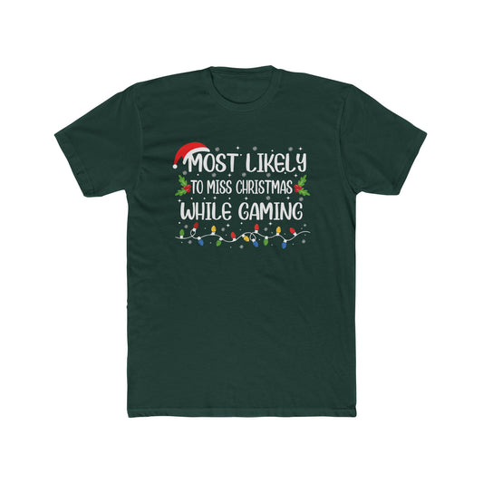 Most Likely to Miss Christmas While Gaming Unisex Matching Christmas Cotton Crew Tee