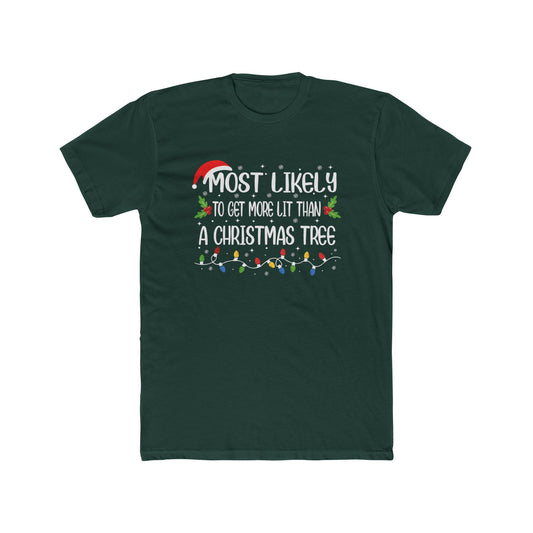 Most Likely To Get More Lit Than A Christmas Tree Unisex Matching Christmas Cotton Crew Tee