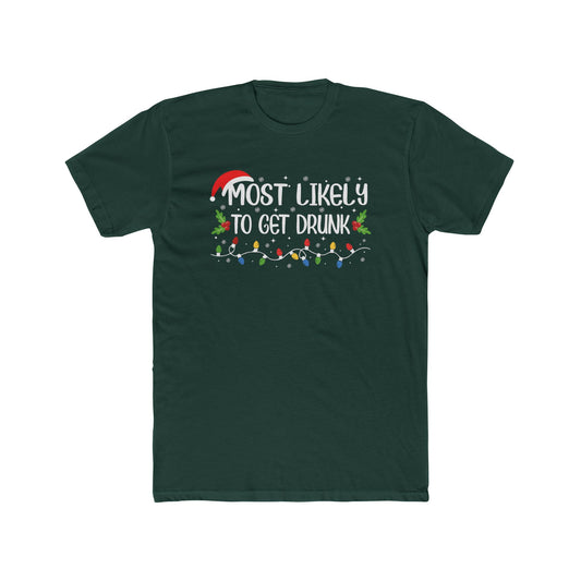 Most Likely To Get Drunk Unisex Matching Christmas Cotton Crew Tee