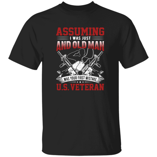 Assuming I Was Just An Old Man Was Your First Mistake – U.S. Veteran Shirt with Crossed Rifles, Soldier Silhouette & Dog Tags