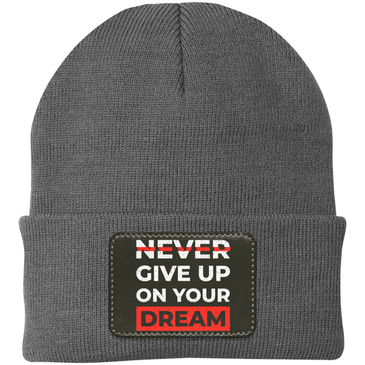 Never Give Up On Your Dream Motivational Inspirational Knit Cap - Patch