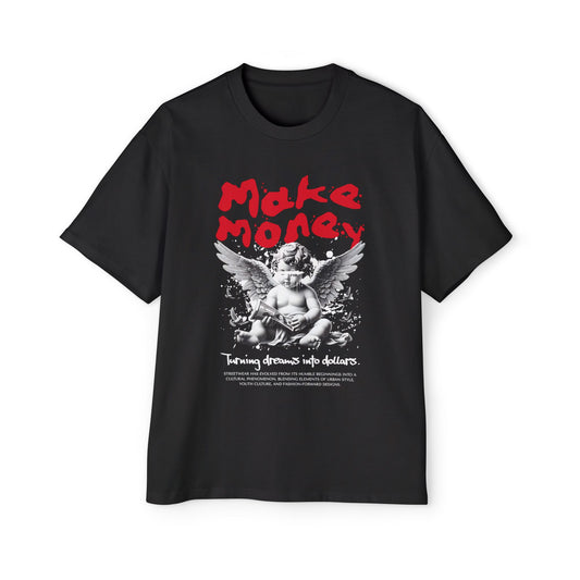 Oversized Tee with Angel Graphic, Make Money Tee, Casual Streetwear, Gift for Him, Comfortable Graphic Shirt
