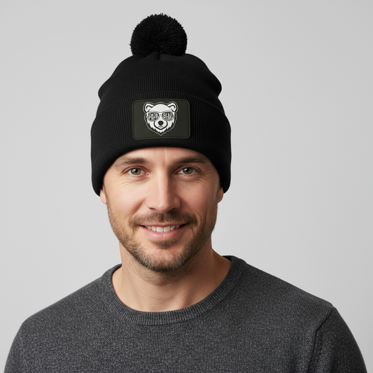Papa Bear Pom Pom Knit Cap - Patch
