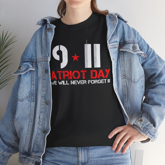 Patriotic Commemorative Tee - We Will Never Forget 9/11, Casual Wear, Memorial Day, Heroes Tribute, Unisex Cotton Shirt
