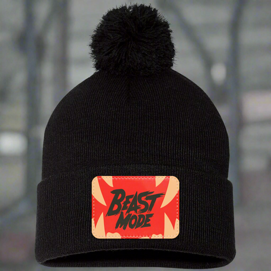 Beast Mode Fangs Pom Pom Knit Cap - Patch
