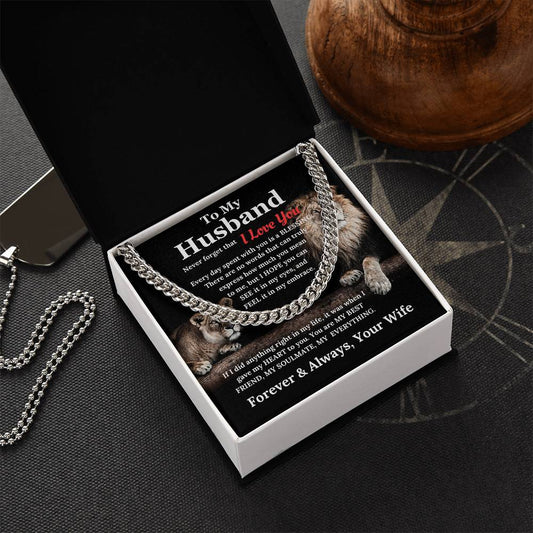 To My Husband - My Everything Cuban Link Chain Lion Couple Design