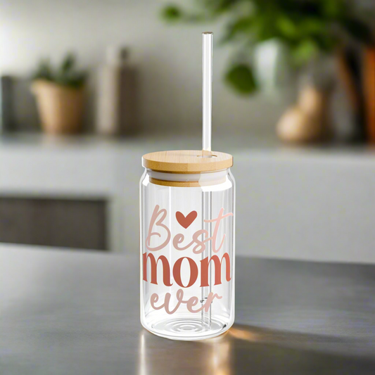 Best Mom Ever Sipper Glass – 16oz Reusable Drink Container
