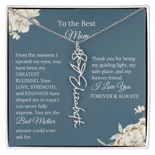 Best Mother Birth Flower Name Necklace Perfect Gift for Mother's Day