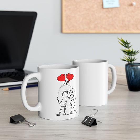Valentines Day Couple Heart Balloons 11oz Ceramic Mug