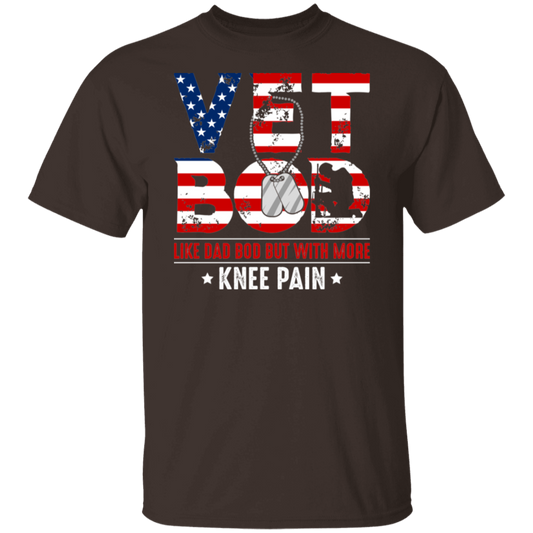 VET BOD Shirt – Funny Patriotic Veterans Day Tee | “Like DAD BOD but with More Knee Pain” Soldier & Flag Design