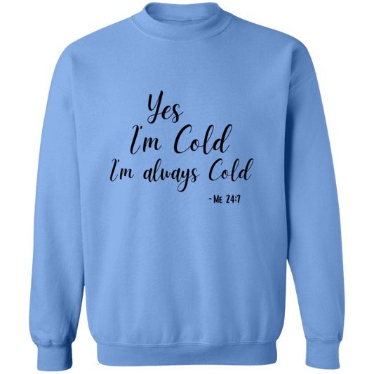 Yes I'm Cold I'm Always Cold Me 24:7 Comfy Pullover Crewneck Sweatshirt