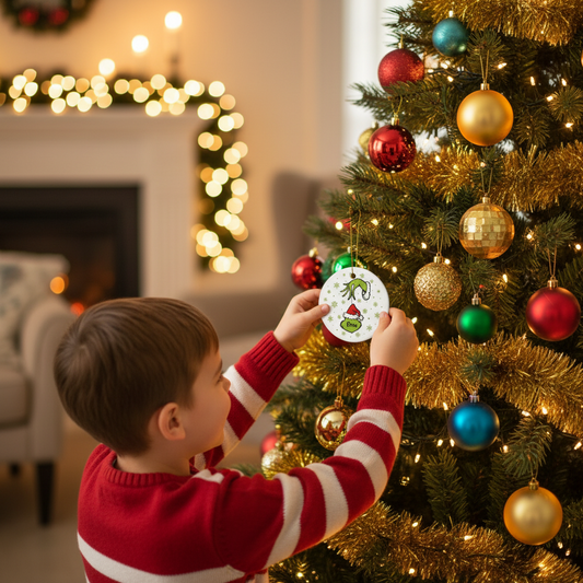 Grinch Hand & Face Christmas Ornament - Double-Sided Ceramic Holiday Decoration