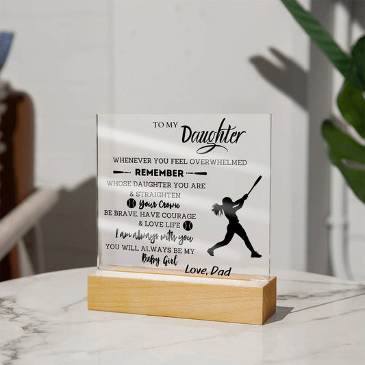 To My Daughter - You Will Always Be My Baby Girl - Softball - Square Acrylic