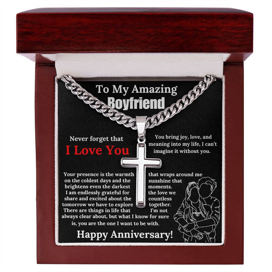 To My Amazing Boyfriend Cuban Chain with Artisan Cross Necklace Anniversary Gift