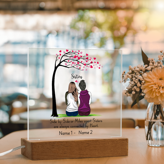 Sisters Acrylic Plaque – Side by Side or Miles Apart, Sisters Connected by Heart – Personalized Sister Gift, Best Friend Sister Decor