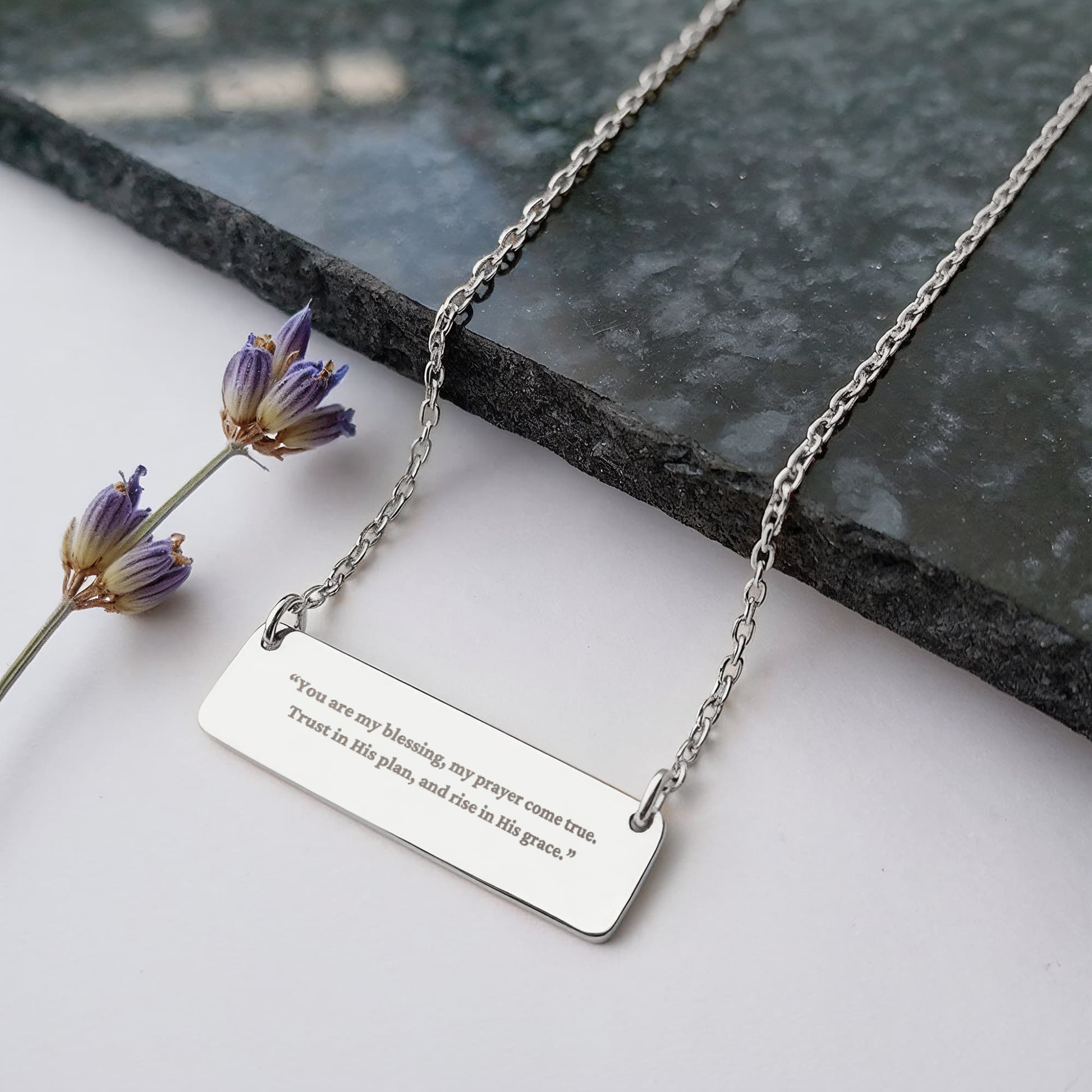 Celebrate life’s special moments with our custom Horizontal Bar Necklace — complete with a hand-polished mirror finish and smooth edges. Engrave this sleek and modern piece with any message, date, or location to create a meaningful keepsake that’s uniquely yours.