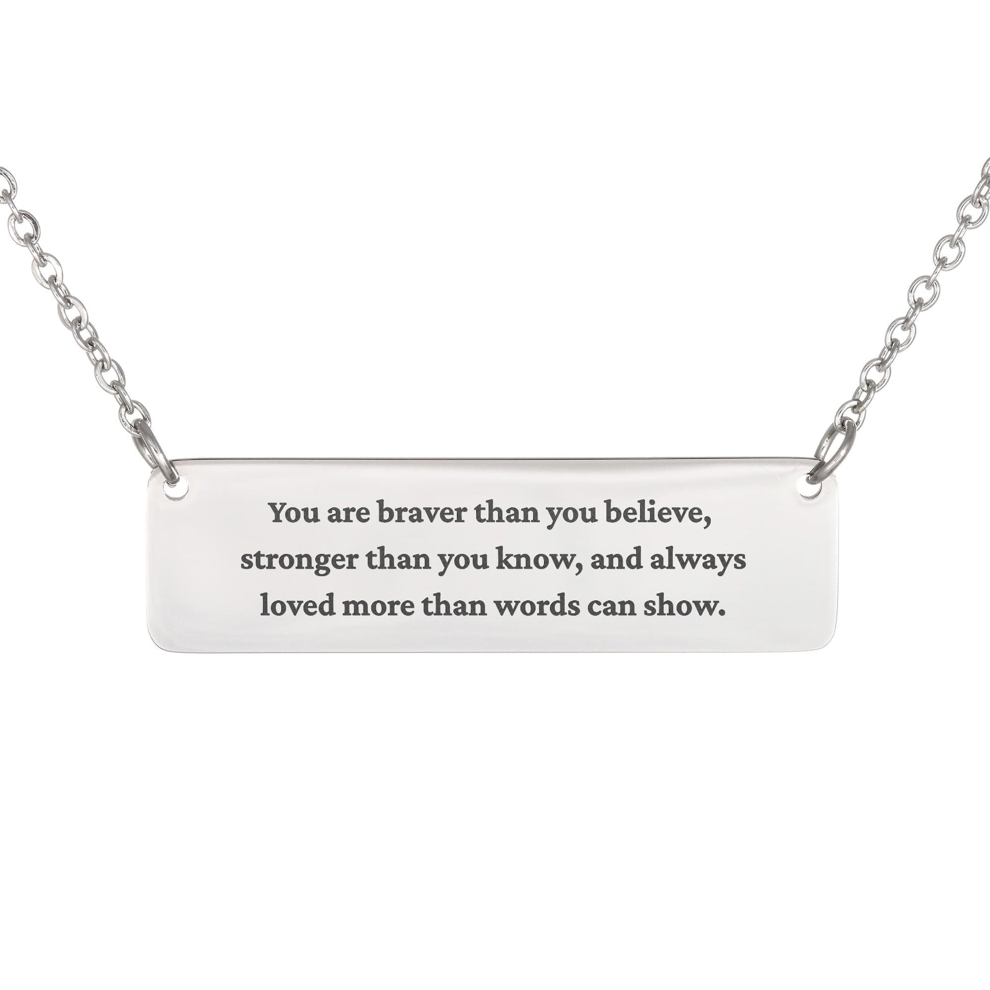 Brave, Strong, Loved – Inspirational Bar Necklace