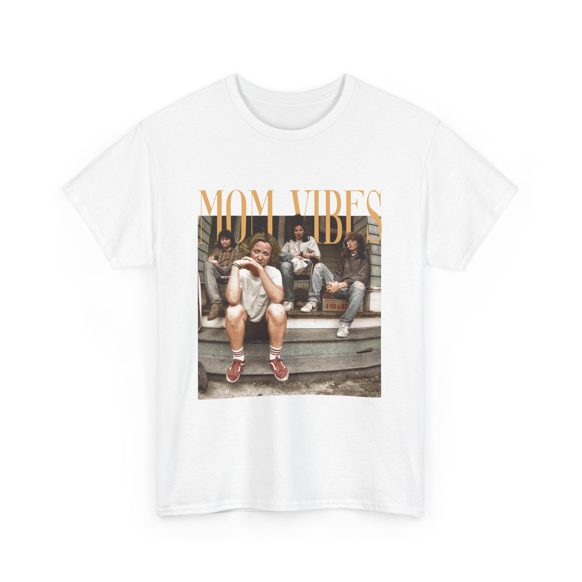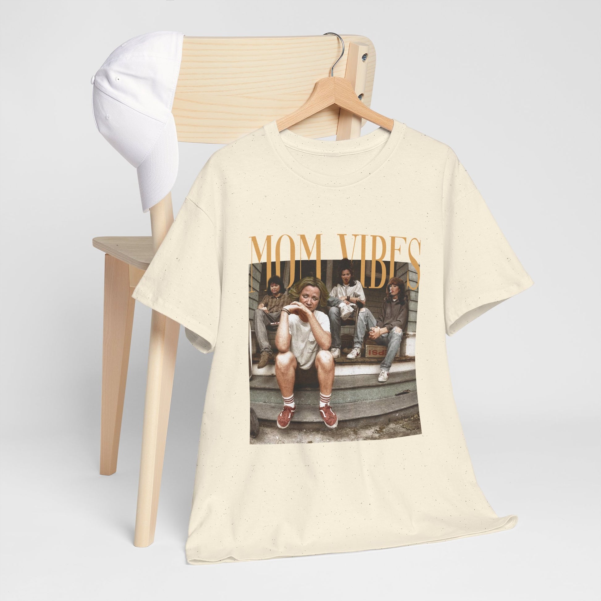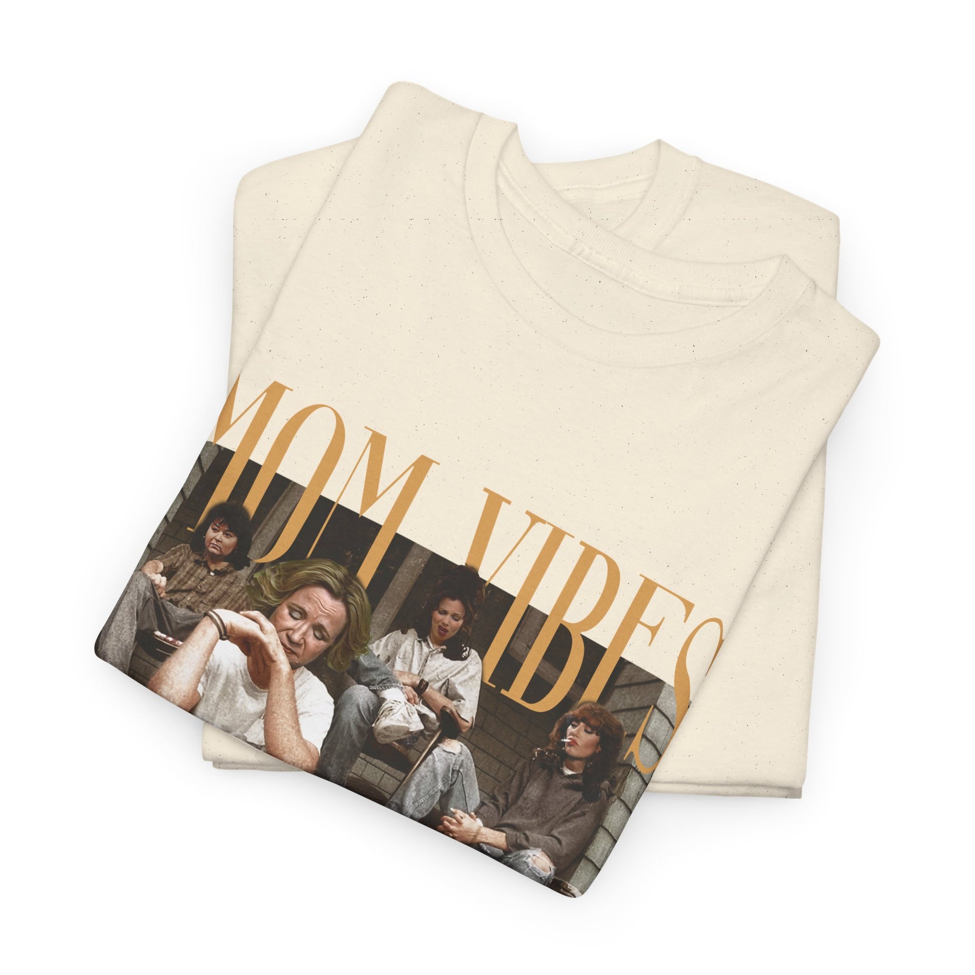 Statement Piece: "Mom Vibes" is printed in a playful, retro-inspired font beneath the image, making this a standout addition to any wardrobe.