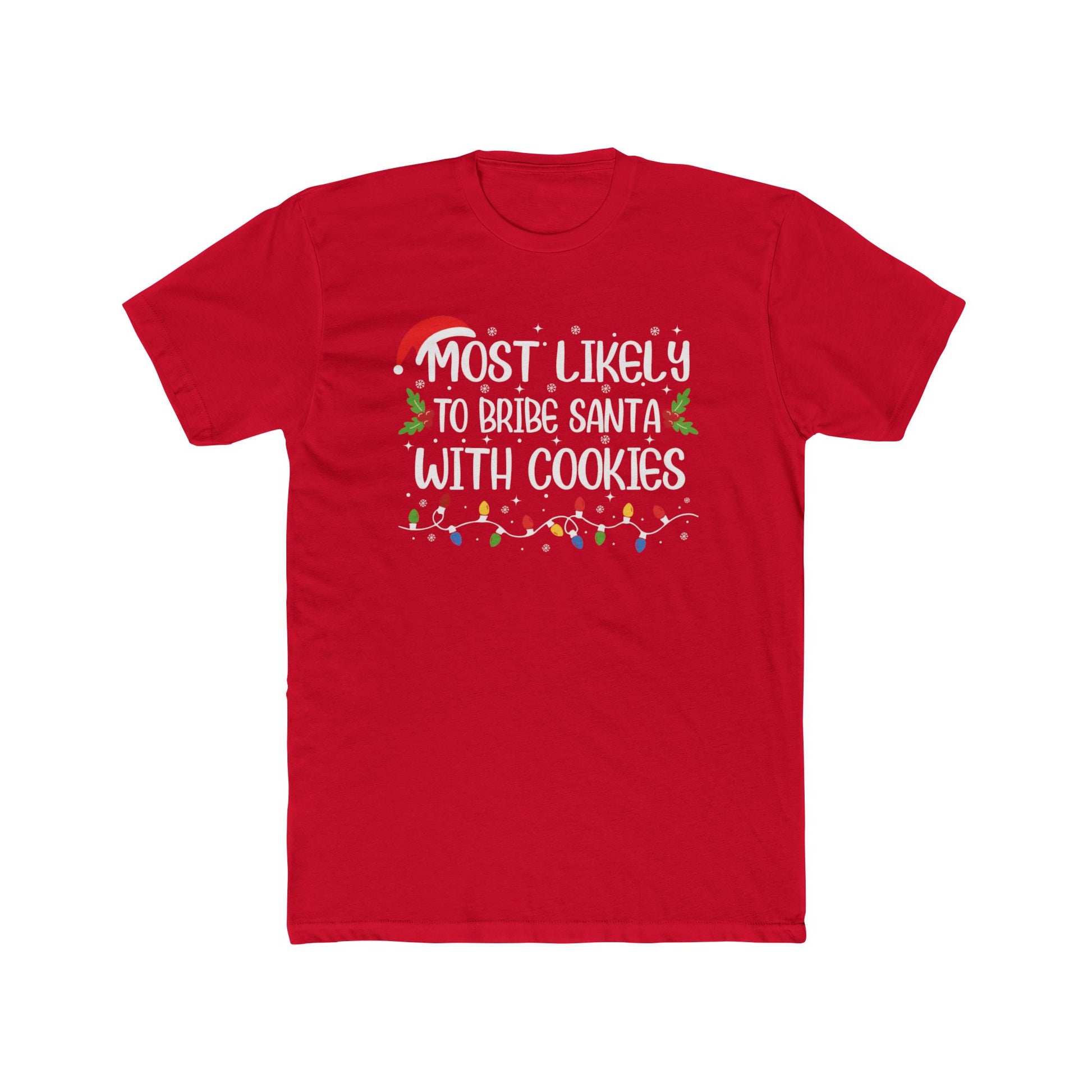 Most Likely To Bribe Santa with Cookies Unisex Matching Christmas Cotton Crew Tee