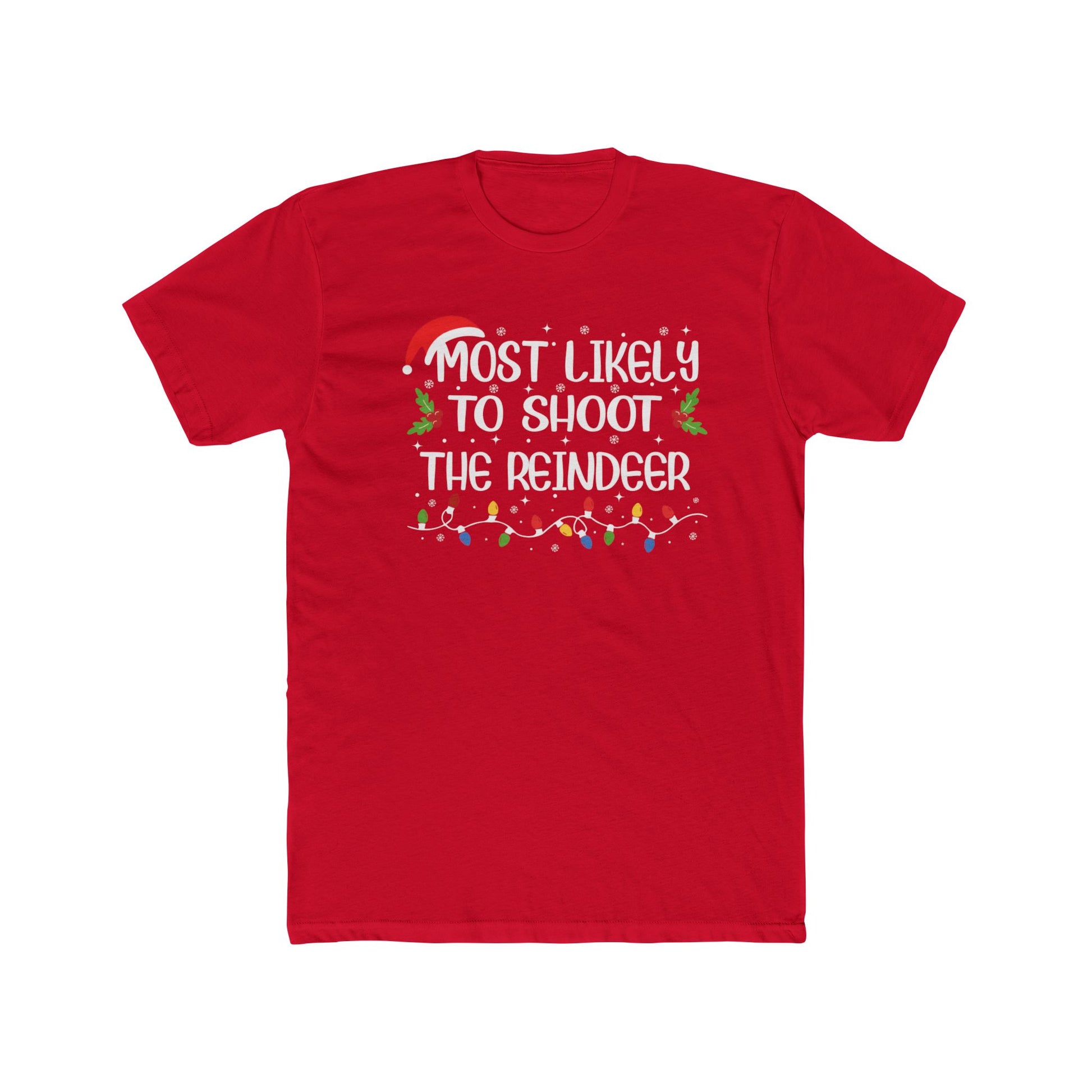 Most Likely to Shoot the Reindeer Unisex Matching Christmas Cotton Crew Tee