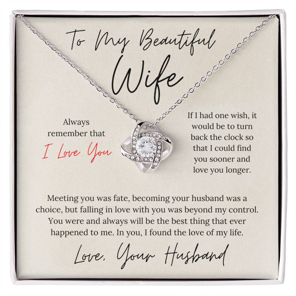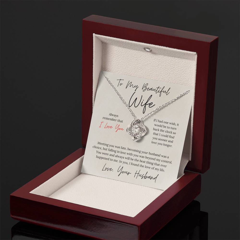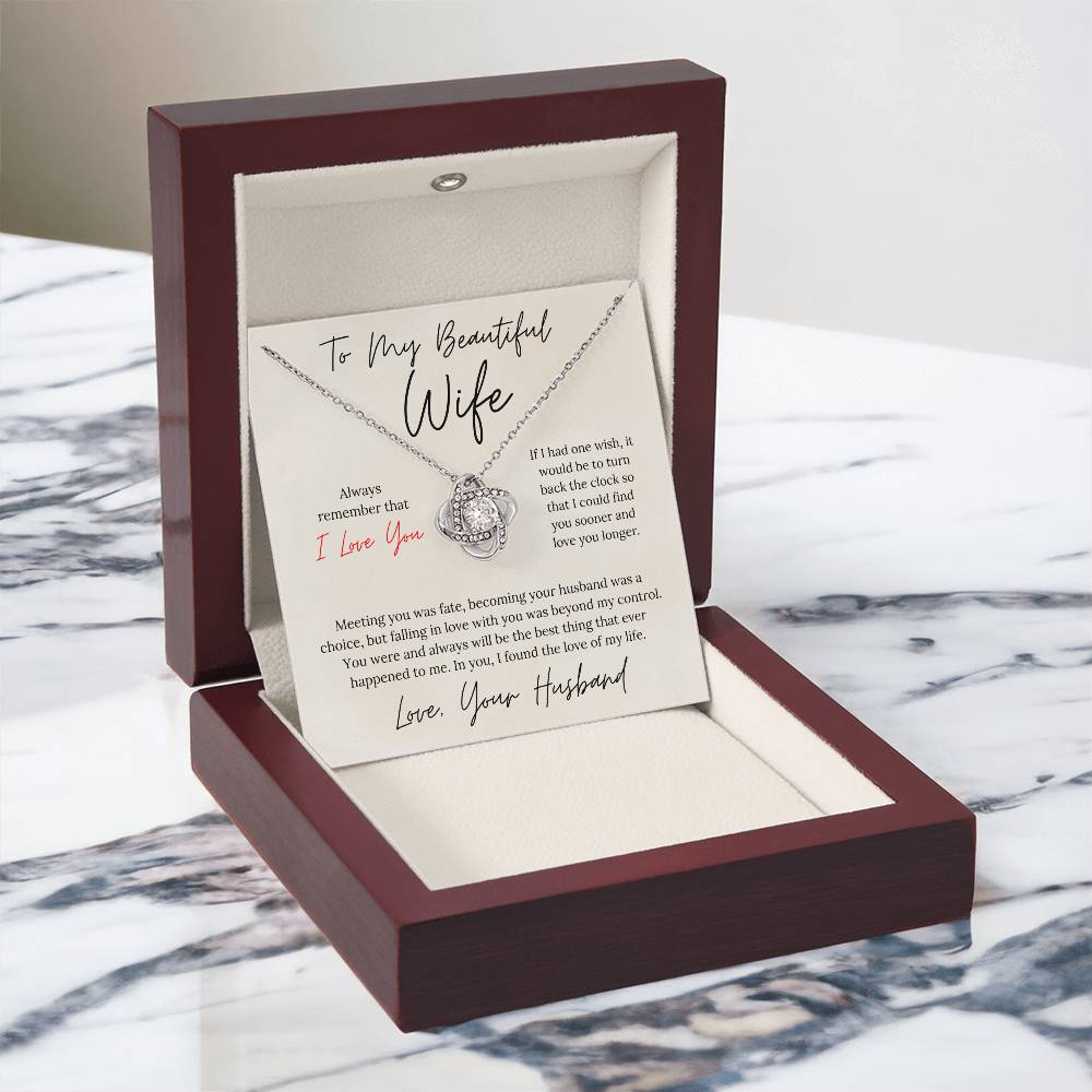 Imagine her reaction receiving this beautiful Love Knot Necklace. Representing an unbreakable bond between two souls, this piece features a beautiful pendant embellished with premium cubic zirconia crystals. Surprise your loved one with this gorgeous gift today!