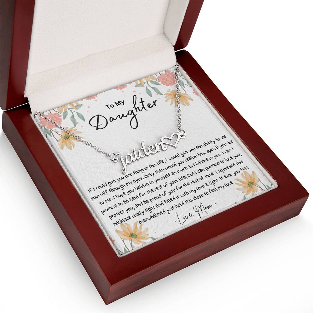 To My Daughter Personalized Name Necklace With Heart Symbol
