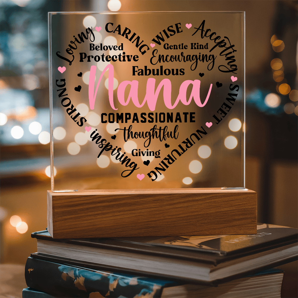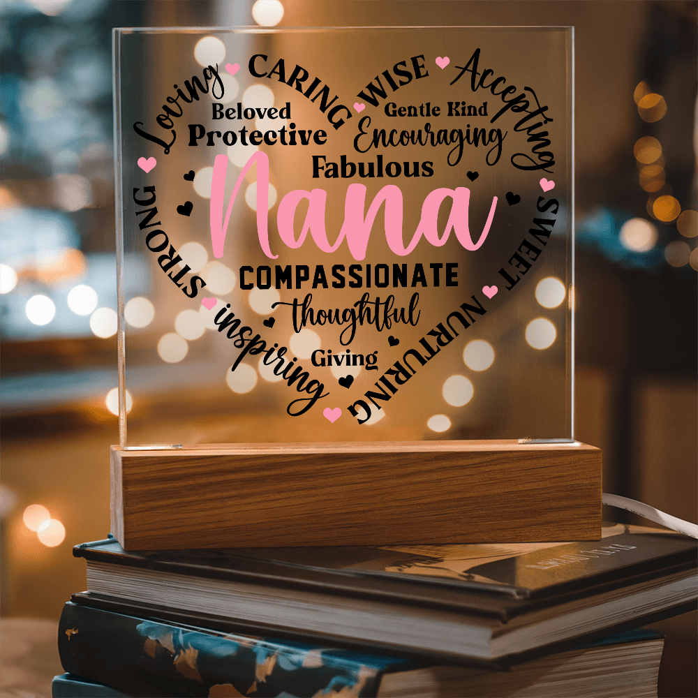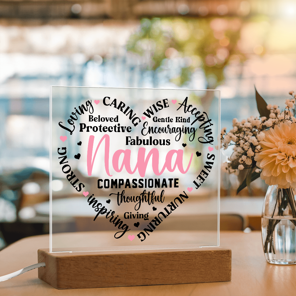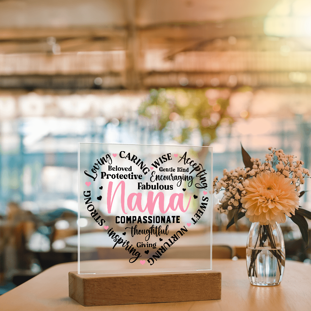 Your plaque will be crafted from premium acrylic with a professionally printed design for a polished look. It comes with a stylish wooden LED base, and you can choose between a USB plug-in option OR a cordless battery-operated option (requires 2 AAA batteries, not included). Both LED bases feature 7 vibrant colors, allowing the user to customize the lighting with various color changes and dynamic cycles.