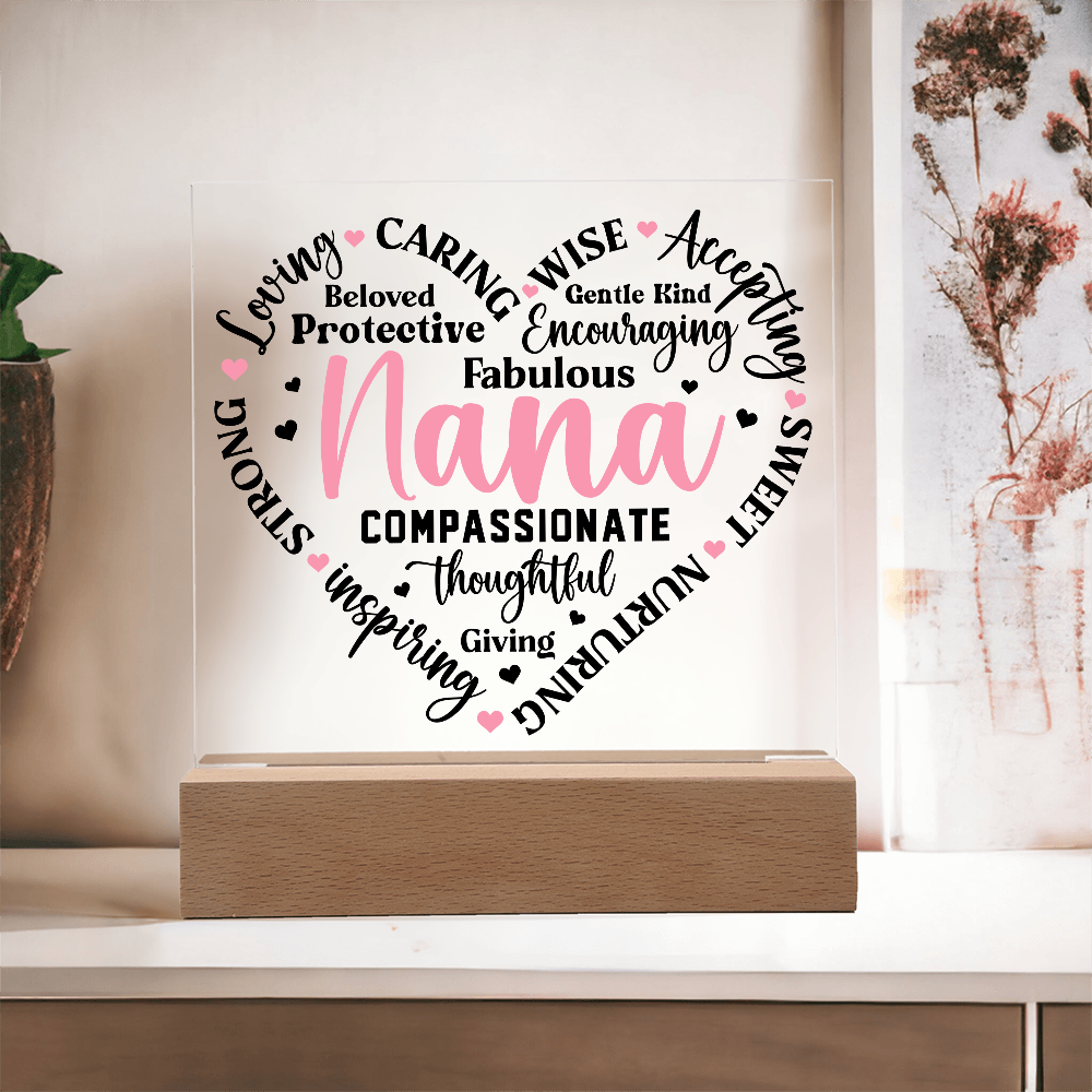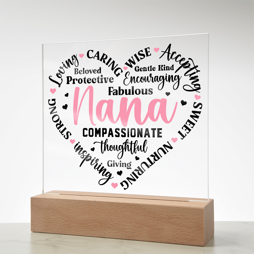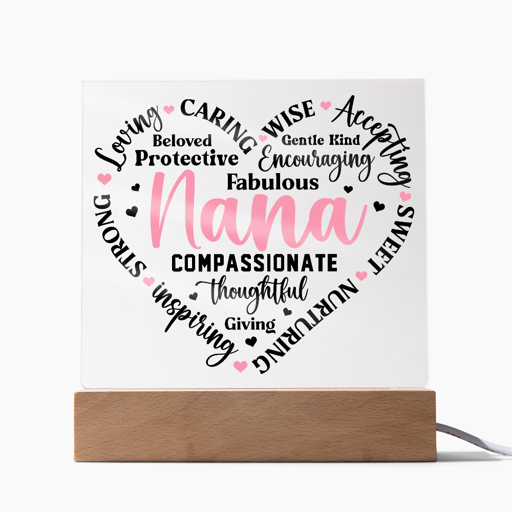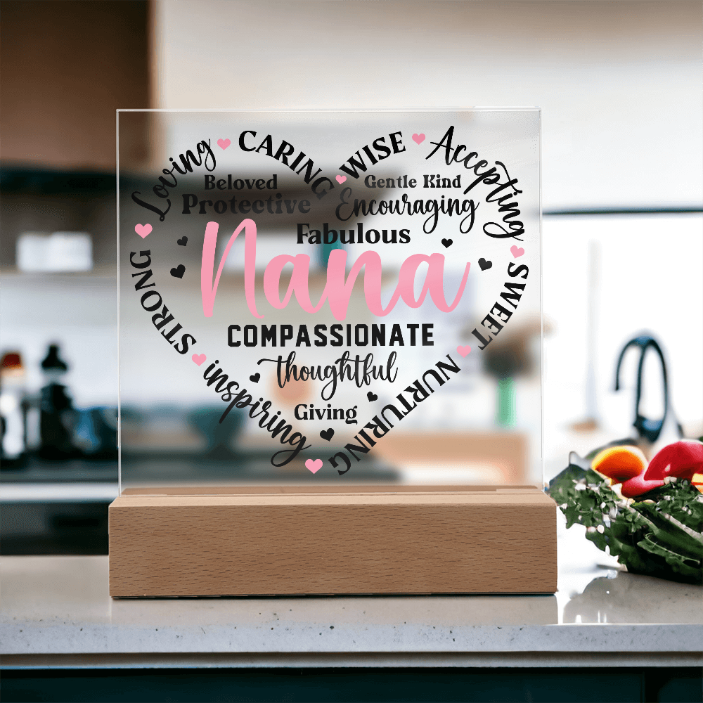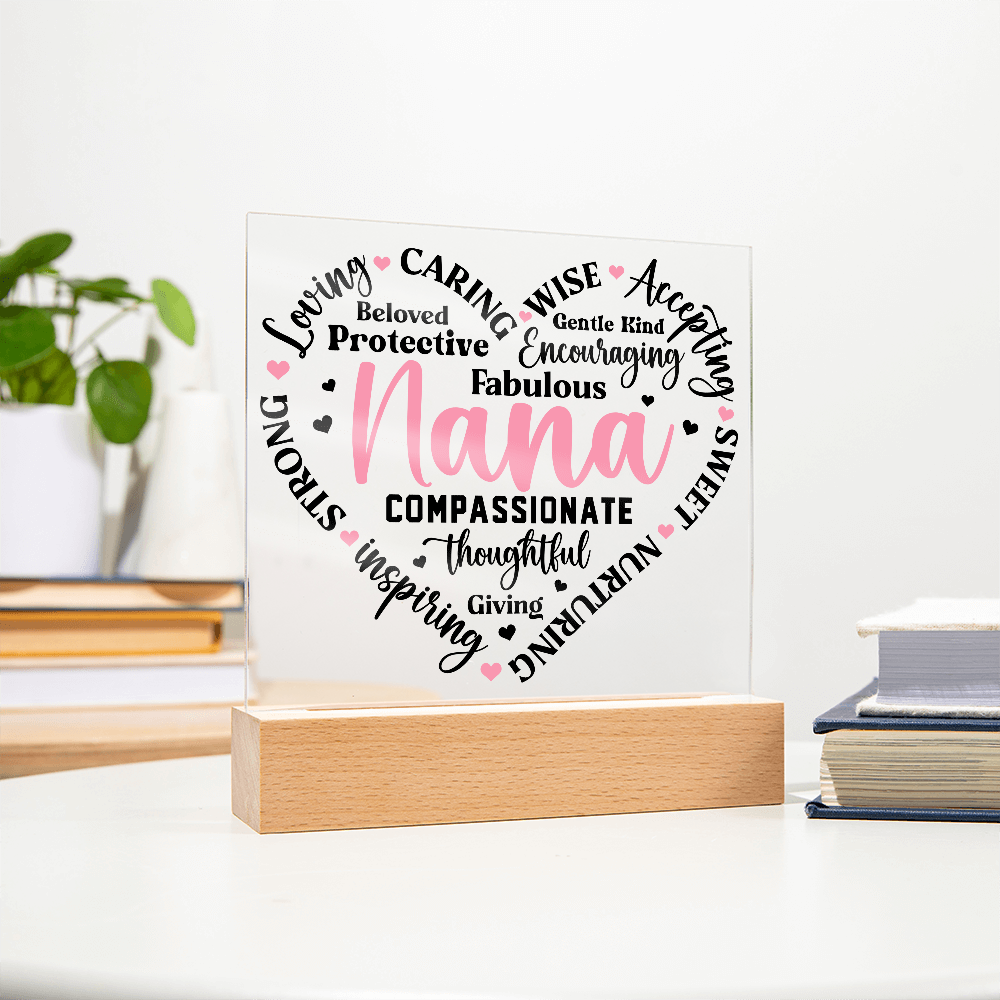 Your plaque will be crafted from premium acrylic with a professionally printed design for a polished look. It comes with a stylish wooden LED base, and you can choose between a USB plug-in option OR a cordless battery-operated option (requires 2 AAA batteries, not included). Both LED bases feature 7 vibrant colors, allowing the user to customize the lighting with various color changes and dynamic cycles.