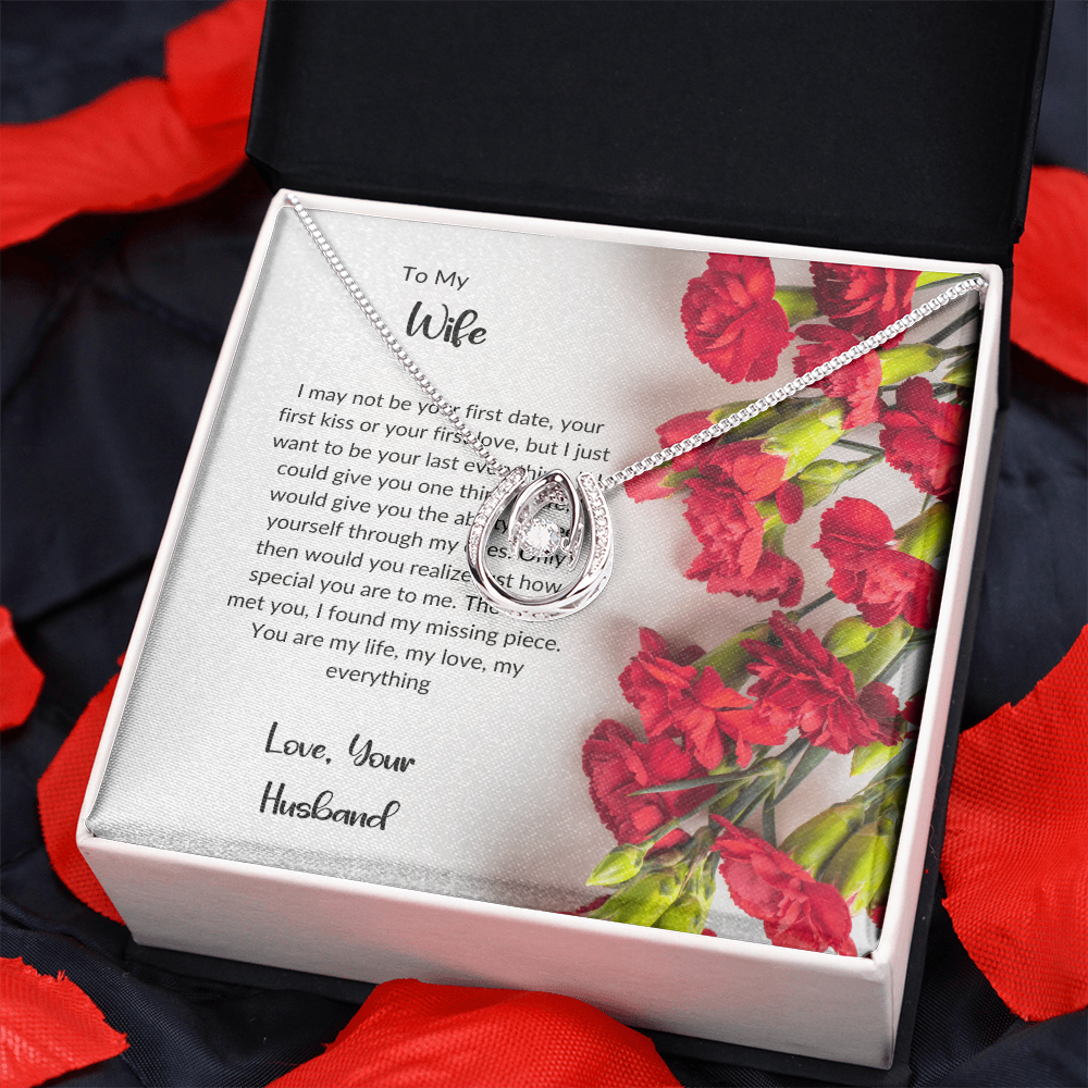Show your wife just how lucky you are to have her by your side. Order your Lucky to Love You Necklace today, and let her know she is your everything.