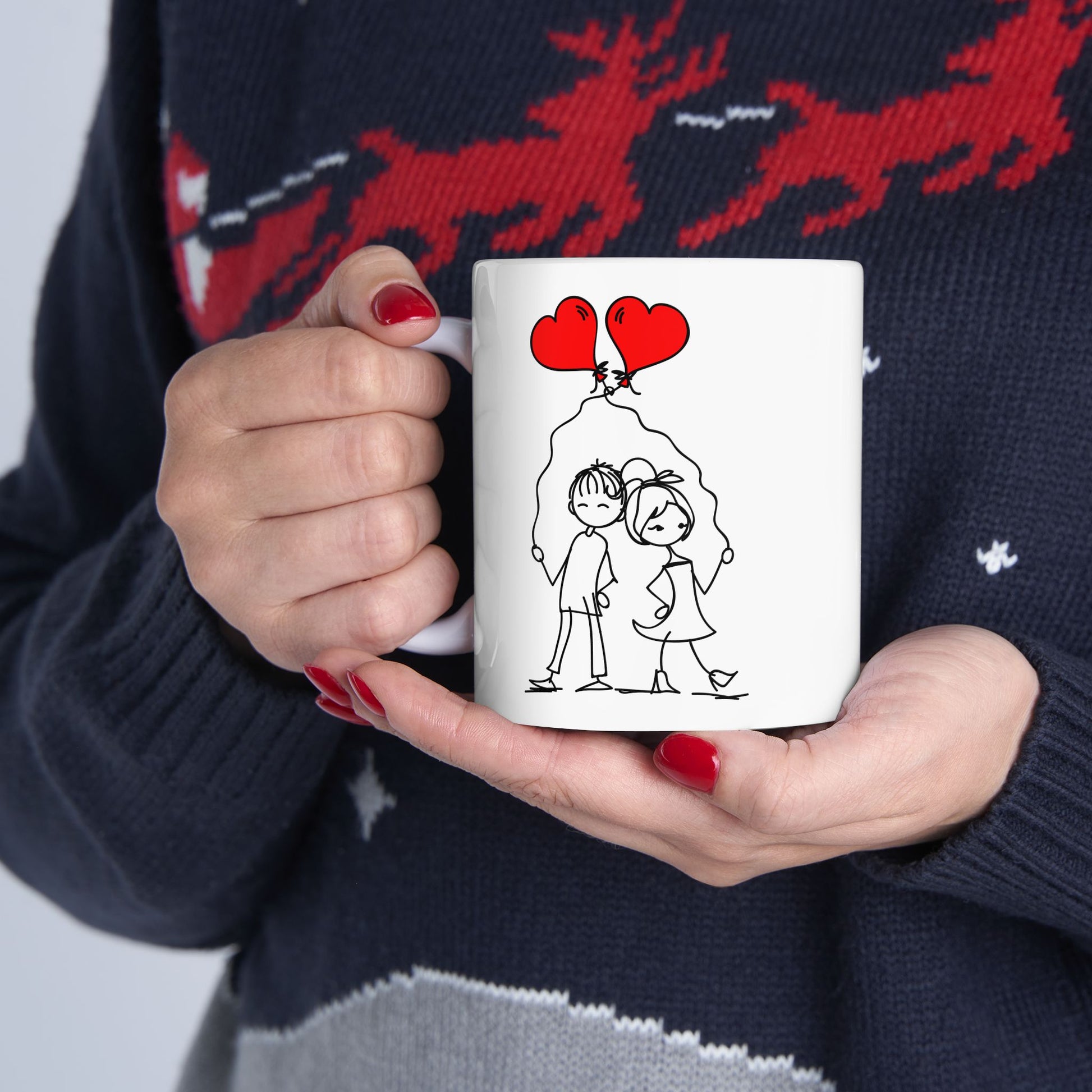 Valentines Day Couple Heart Balloons 11oz Ceramic Mug